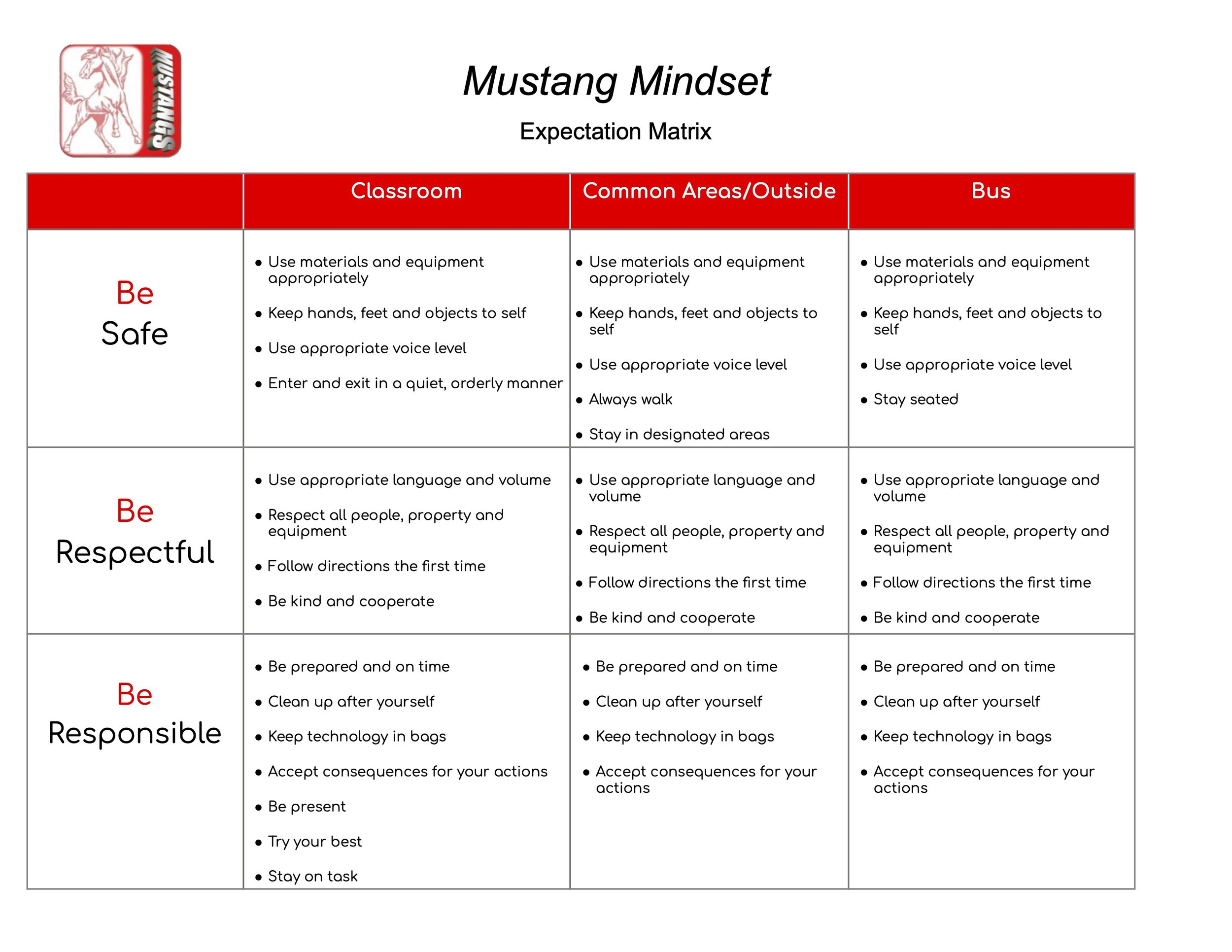 MUSTANG MINDSET • Be Safe • Be Respectful • Be Responsible •